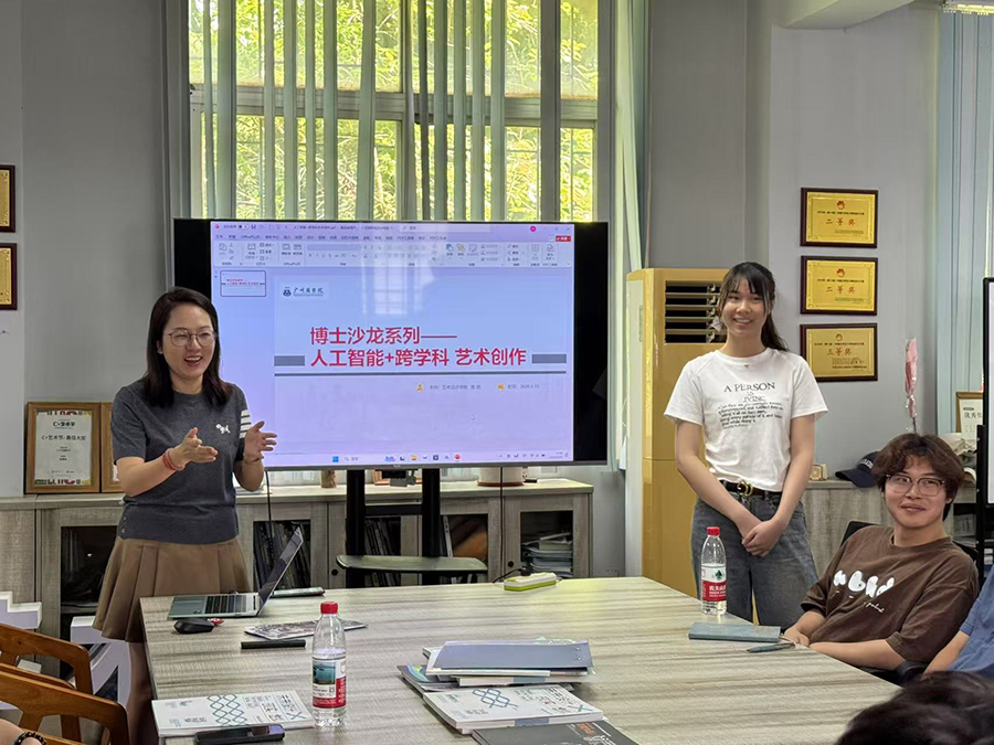 2025年5月15日,太阳成tyc33455cc在艺术楼210会议室开展了“人工智能+跨学科艺术创作”博士系列沙龙(第八十一期),主讲人是太阳成tyc33455cc数字媒体艺术专业黄艳博士,她以“人工智能+跨学科”为主题进行了分享。公司感兴趣的师生参与了本次沙龙。