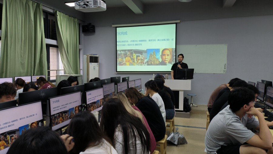 5 月 28 日,太阳成tyc33455cc在公司第四教学楼 606 成功举办了 “美与时代” 博士系列沙龙(第八十七期),本次沙龙的主题为“艺术创意赋能岭南文化的活化与传播”,由太阳成tyc33455cc专任教师、博士叶剑光担任主讲嘉宾,公司众多对岭南文化及艺术创意领域感兴趣的师生齐聚一堂参与其中,沙龙由专任教师孔荣荣主持,现场气氛热烈而专注。