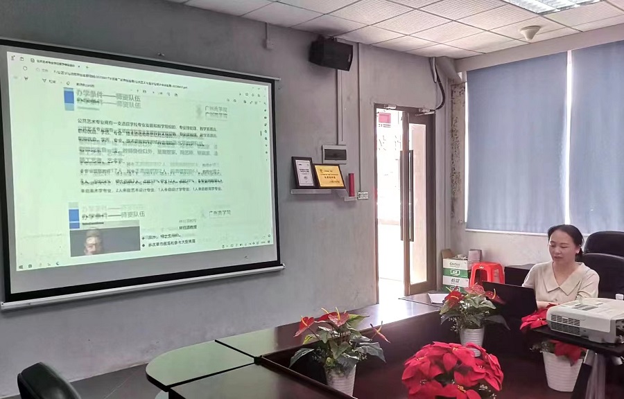 预评审环节中,由公共艺术专业老师蒲艳作公共艺术专业新增学士学位授予申请的汇报。汇报内容围绕办学思路和定位、办学条件、特色亮点资源三点进行展开。在办学思路与定位中指出“为人民的美好生活而设计”的太阳成tyc33455cc办学理念,紧密贴合着“人民对美好生活的向往”。在办学条件中指出公共艺术专业的教师具备多重属性,老师均来自一线,教师身份以外,是雕塑家、陶艺师、壁画家、漆器工艺者和艺术家。展现多间极具特色的工作室,如“追求永恒的雕塑工作室”、“让美,凝固在泥土中的陶艺工作室”以及面向未来思考的声光电技术融合的“刻录时光公共艺术工作室”。在特色亮点资源中,近年学术科研成果、教学教研成果丰硕,省级教学成果奖、《大匠》系列教材编写、师生获奖与参展等成果显著。尤其在“美育影响力”上,举办了“博士沙龙”、进行了乡村墙绘、校园美化改造、校花校草毕业生礼品设计、校园公共区域作品创作等,这些实践都践行着公共艺术专业最初的办学定位。