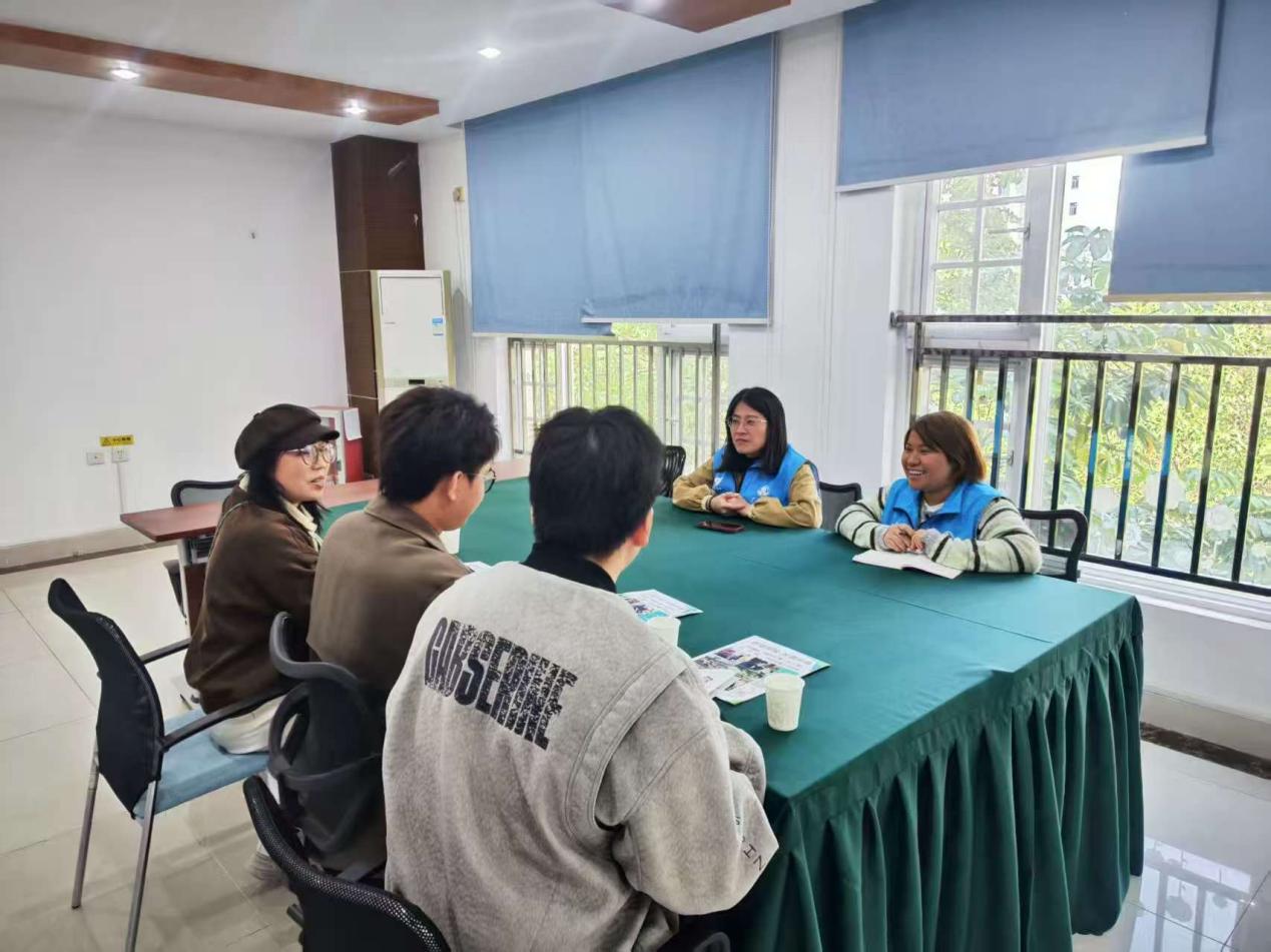 黄埔区龙湖街 “双百工程” 社工站深耕基层民生服务,聚焦弱势群体帮扶、乡村养老保障等核心领域,积极联动社会各界资源推进慈善项目落地,其开展的 “幸福小店”“农村互助养老” 等项目与数字媒体艺术专业的传播赋能需求高度契合。交流期间,黄盼主任、郭瑞冰主任对杨海霞老师一行的到访表示热烈欢迎,双方围绕当下社会服务与慈善项目的发展现状、实践难点展开深入探讨,直击公益事业发展的核心问题。